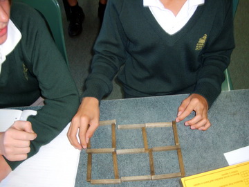 Enoka was working with Year 7 in the first month of the year - their first year in secondary school. Her icy-pole stick patterns developed into a project about building 'row houses' given the costs per wall and roof. Enoka's PowerPoint Presentation provides background, including trialing alternative forms of assessment.