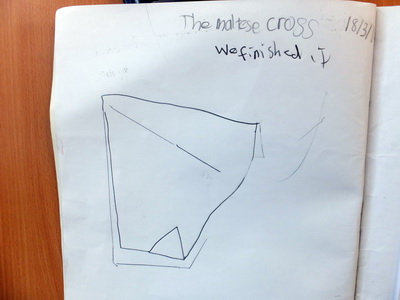 Oliver had an aversion to recording in the beginning, as evidenced by his effort for Task 196, Cross & Square (formerly Maltese Cross), even though he could have traced the pieces. This was March 18th. Later in his journal he records working on Task 183, Pizza Toppings, on both June 2nd and 13th and details three pages of possible pizzas. Whether or not he is correct in every aspect, the effort is clearly monumental in comparison to his first try.