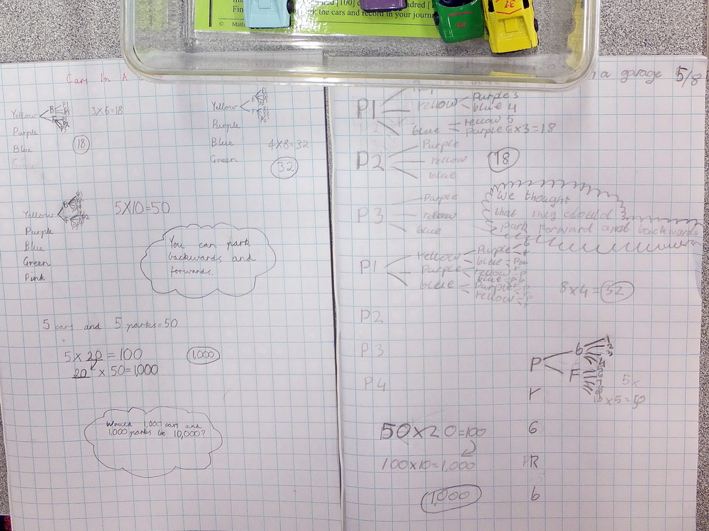 Hugh and Harrison worked on Cars In A Garage and made some sophisticated calculations.