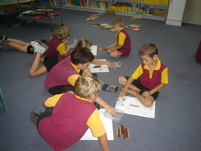 The management strategy in the game of one student as the Dice Roller, and the aim being to win the flat and become the Dice Roller, was stunning. Another key is using the calculator after using the wood to keep the on-going tally. The game ran itself and I was released to sit with any group or student and observe and evaluate their place value knowledge. The teams played for about 30 minutes then we recorded the wood each player had, and whose turn it was, and put the equipment to the side for another time. |