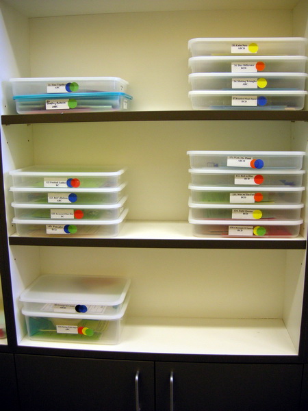 teachers to sign tasks in and out. A task can be easily found if it is missing from the shelf.