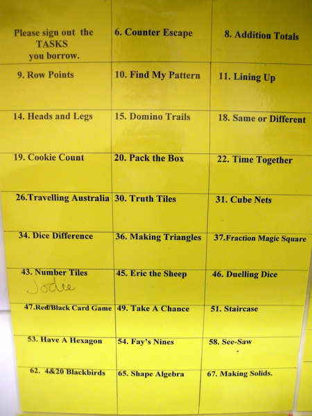 right beside the tasks. Jodie is working with Number Tiles (and a