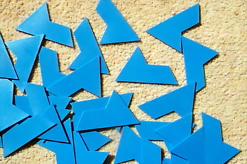 Plastazote Pentagon Triangles as shown are no longer available. However, teachers or students could make cardboard Pentagon Triangles by cutting a regular pentagon into isosceles triangles along its diagonals as in the photo. Or you could employ the assistance of the craft department or the local Mens' Shed.