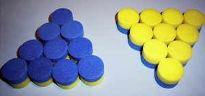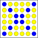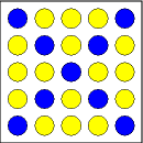 1. Prepare a red board so that it shows a 4 x 4 set of empty spaces. Fill the spaces with either yellow or blue plugs.