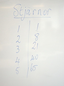 1. With student help, construct a Size 4 Star Number on a central table and pose the question.