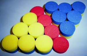 • One red and two yellow/blue plugs per person