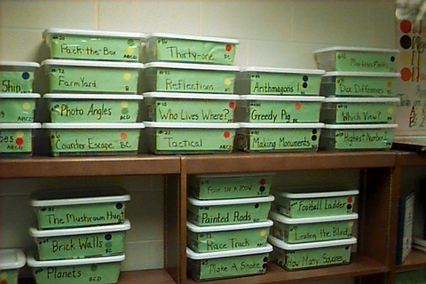 Stacking needs to be for easy access by students. Where do I find..? needs to be virtually self-answered. Coloured stickers indicate to teachers the curriculum strand(s) to which the problem relates.